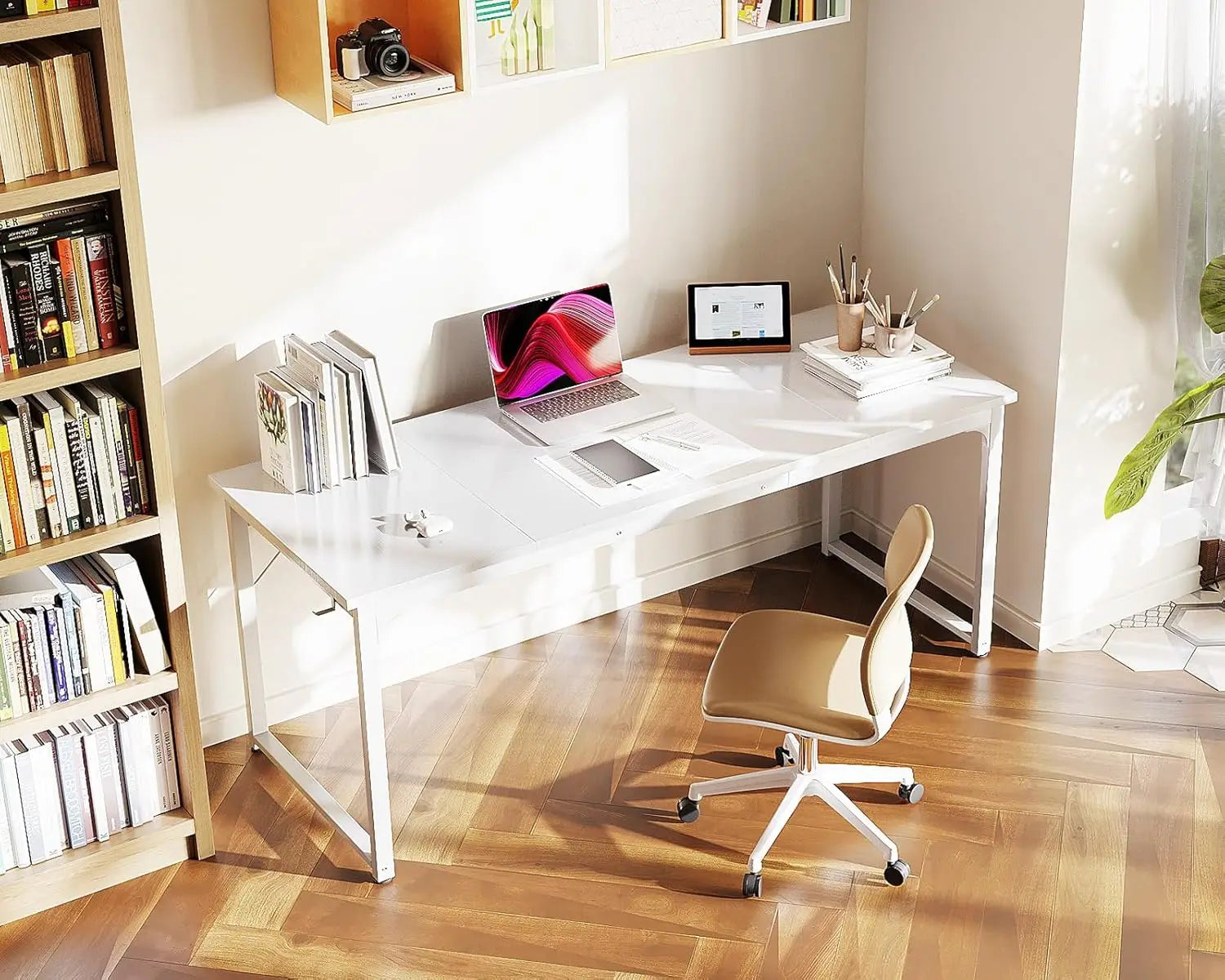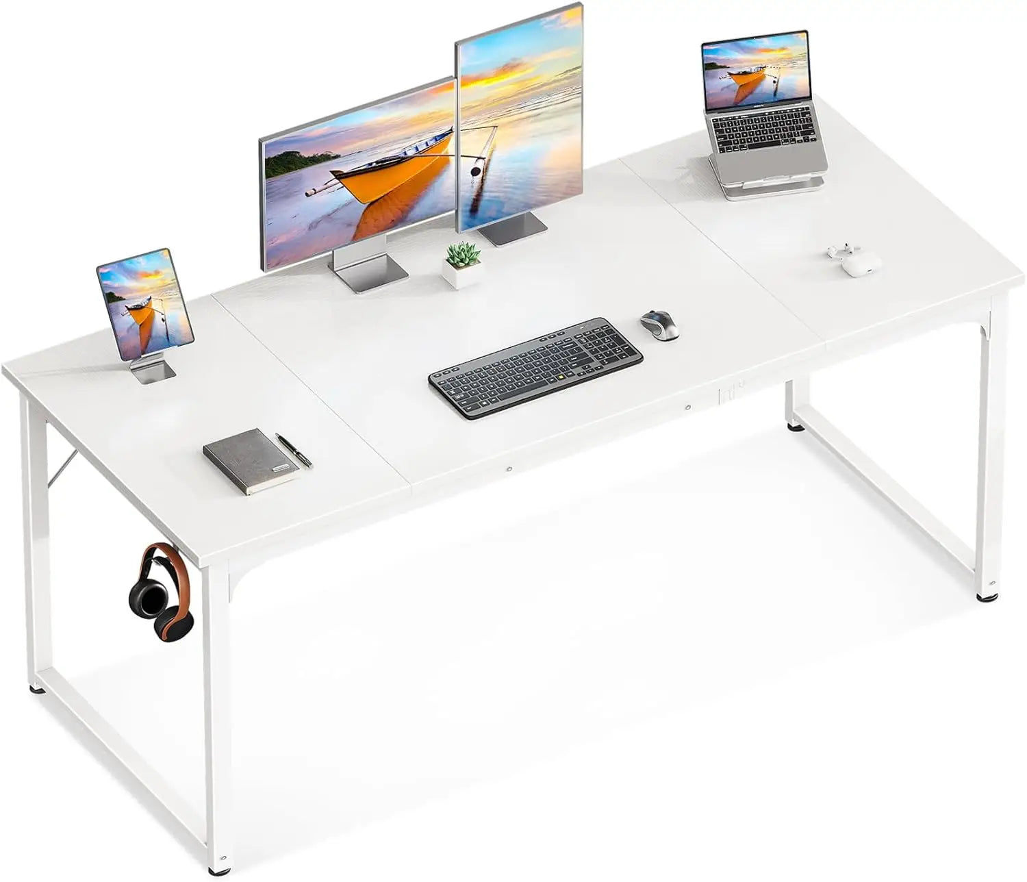 Maximize your productivity with our 63' Computer Desk for Home Office. This spacious desk provides ample space for all your work needs, keeping you organized and efficient. Its sleek design and sturdy construction make it perfect for any home office setting. Upgrade your workspace today!