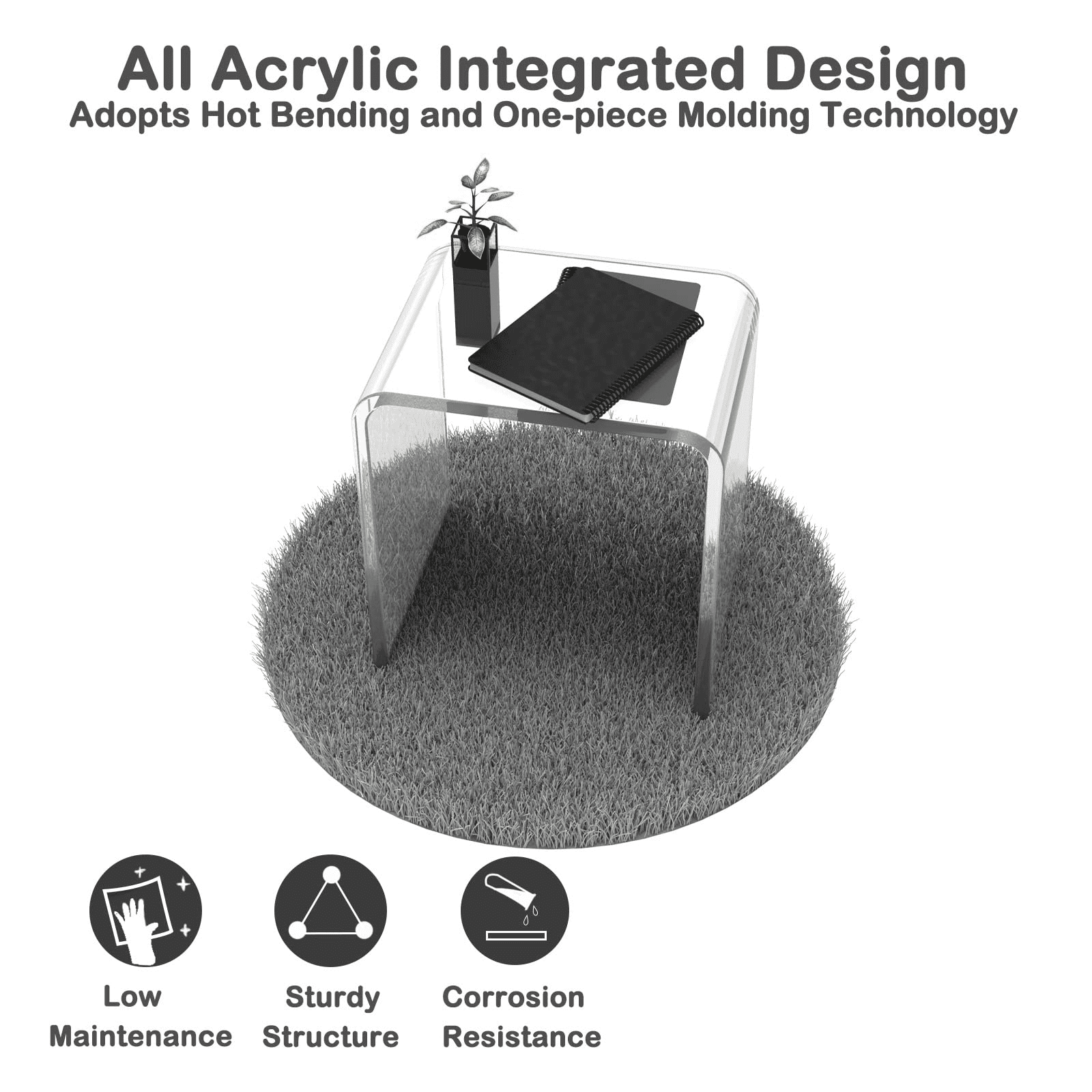 Ageszoe Acrylic End Table, Modern Bathroom Chair 3/4" Thick with Round Edges, 16"L x 12"W x 18"H, Transparent