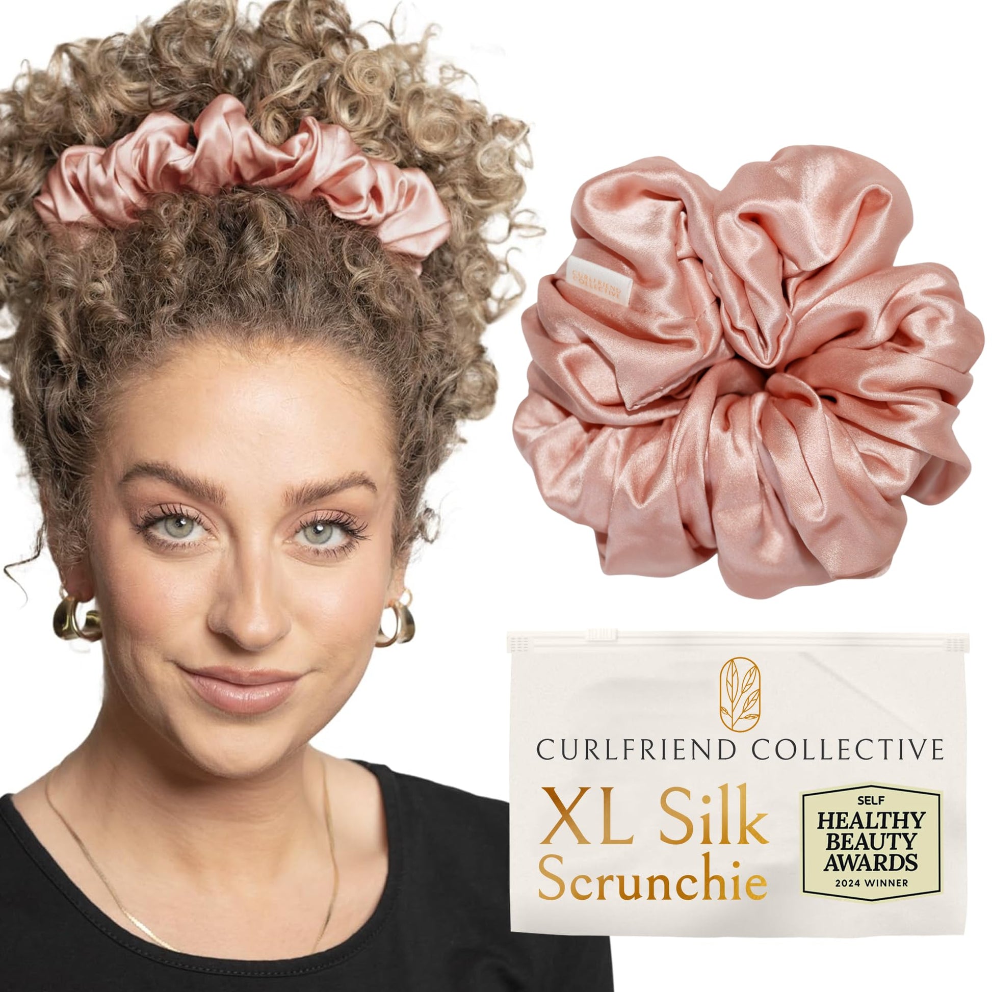 - PREMIUM 100% MULBERRY SILK: Crafted from 6A Grade 22 Momme Mulberry Silk, our XL silk scrunchies are the ultimate luxury for your hair. Enjoy the unparalleled smoothness and shine of genuine silk, ideal for thick, curly, wavy, and oily hair. These mulberry silk scrunchies provide a gentle hold that helps maintain your curls' natural beauty without causing any damage or frizz.