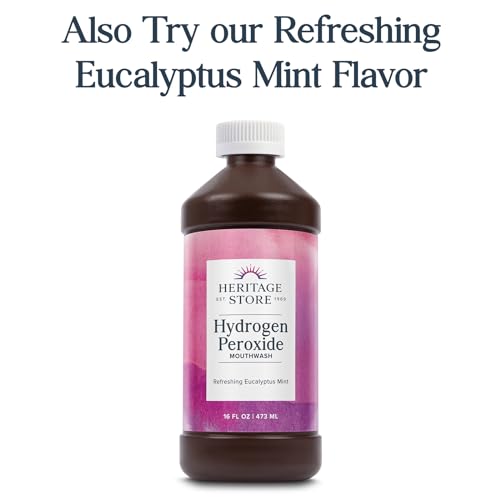 Heritage Store Hydrogen Peroxide Mouthwash, Daily Oral Care, Fresh Mint Mouth Wash - Gentle Bubbling Action for Clean Healthy Gums and a Fresh Mouth, Sweetened w/Xylitol, Cool Wintermint Flavor, 16oz
