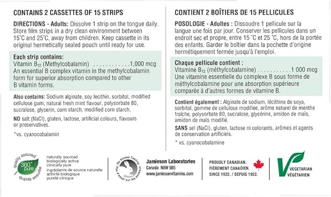 Jamieson Vitamin B12 1,000 mcg Fast Dissolving Strips, 30 Strips