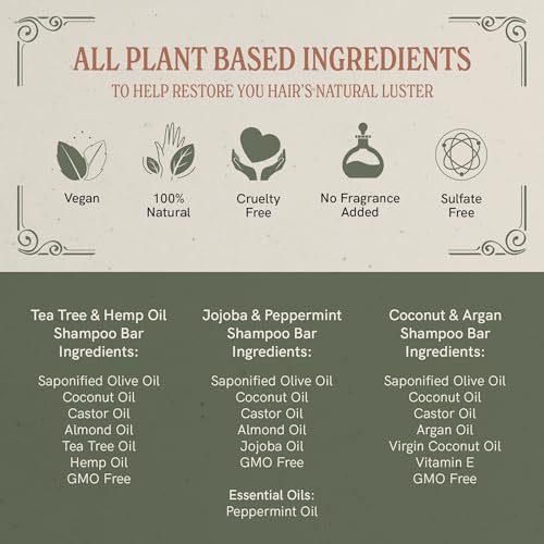 J·R·LIGGETT'S Shampoo Bars - Tea Tree, Jojoba & Peppermint and Coconut & Argan Oils - Nourishes Follicles with Antioxidants and Vitamins - Sulfate-Free - Set of Three 3.5 Ounce Bars