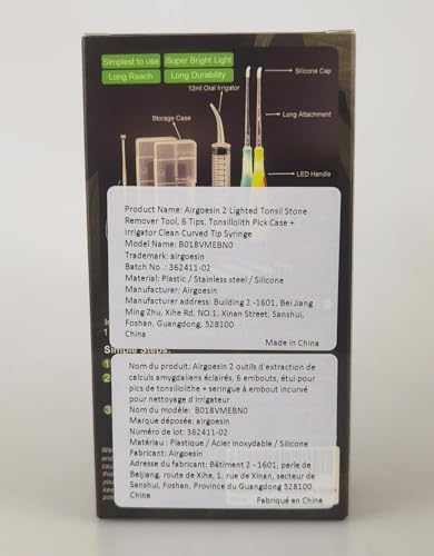 Airgoesin™ Upgraded Tonsil Stone Remover Tool, Blue & Yellow, 5 Tips, Tonsillolith Pick Case + 1 Irrigator Fresh Breath Oral Rinse