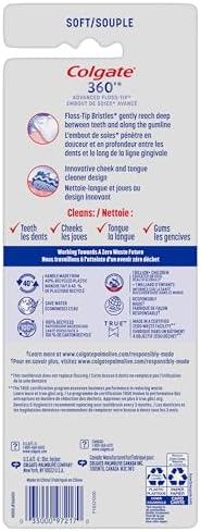 - The purple floss-tip bristles reach deep between teeth (this toothbrush does not replace flossing).