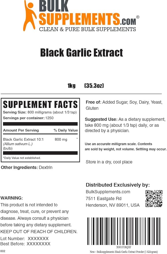 - ➕ Source of Antioxidants - Garlic is a well-known source of antioxidants, and black garlic extract is even better. This Black Garlic Extract Powder, an antioxidant supplement, contains a high dose of antioxidants to help protect your body from free radicals damage.* This Black Garlic Powder, a garlic extract supplement is a natural boost of antioxidants to support the overall health and wellness of the body.*