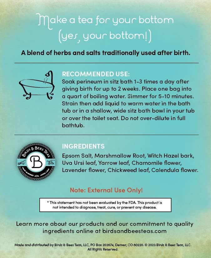 - USE OUR TEA EXTERNALLY & USE THE PADS —make a tea for your bottom (you read that right!) from this carefully crafted blend of herbs and salts. Sitz Bath to make a soak for your bottom and use the sachet either warm or cold after freezing.