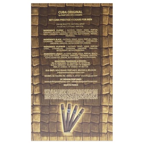 Cuba Prestige 4 Piece Gift Set for Men (Classic + Black + Platinum + Legacy) Eau De Toilette Spray 1.7 Ounce Each