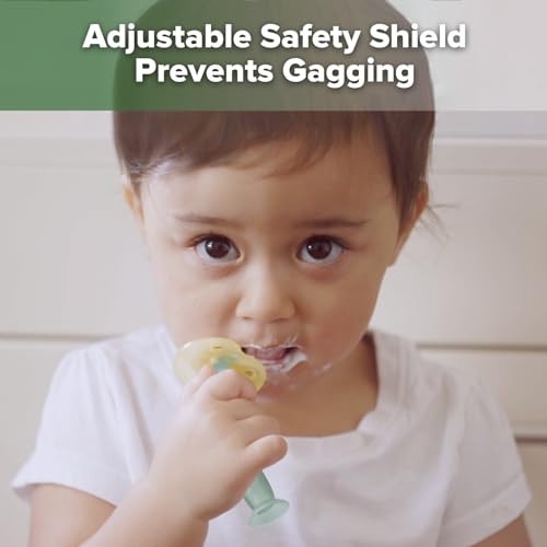 - ADJUSTABLE CHOKE-FREE SHIELD: The safety shield moves up or down to suit your baby’s needs, ensuring the prevention of gagging and choking.