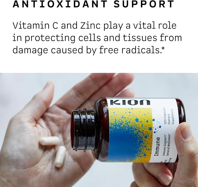Kion Immune - Immune Support Supplement - Vitamin C Supplement - Vitamin C and Zinc for Everyday Wellness - 500 mg Vitamin C (Ascorbic Acid) and 10 mg Zinc - 120 Servings