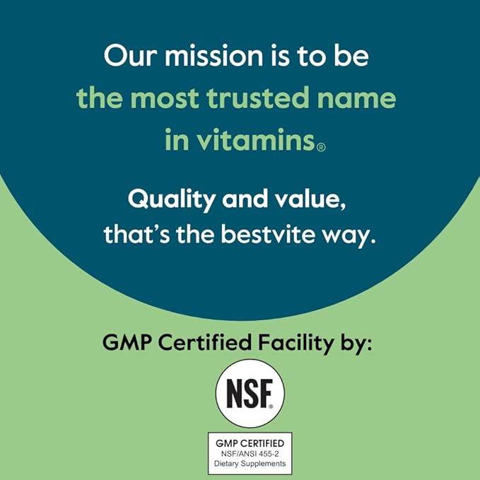 - NSF GMP CERTIFIED: Bestvite’s facility is NSF/ANSI 455-2 Dietary Supplements Good Manufacturing Practice (GMP) certified. Earning GMP certification from NSF verifies that a manufacturing facility has the proper methods, equipment, facilities, and controls in place to produce dietary supplement products.