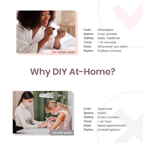 - 【What You Get】: 36W UV/LED Nail Lamp with Adapter*1, Gel polish 7.5ml*6, Base coat 7.5ml*1, Top coat 7.5ml *2 (glossy & matte), Cuticle oil 7.5ml*1, Nail cap handle*1, Cuticle trimmer*1, Cuticle pusher*1, Nail file*1, Nail buffer*1, Nail clipper*1, Nail separator*2 and Nail Brush duster*1. Prepare for all you need for DIY mani at home, you could enjoy a Safer, Healthier, and Affordable Home Nail Experience with Family and Friends, Saving Time and Money.