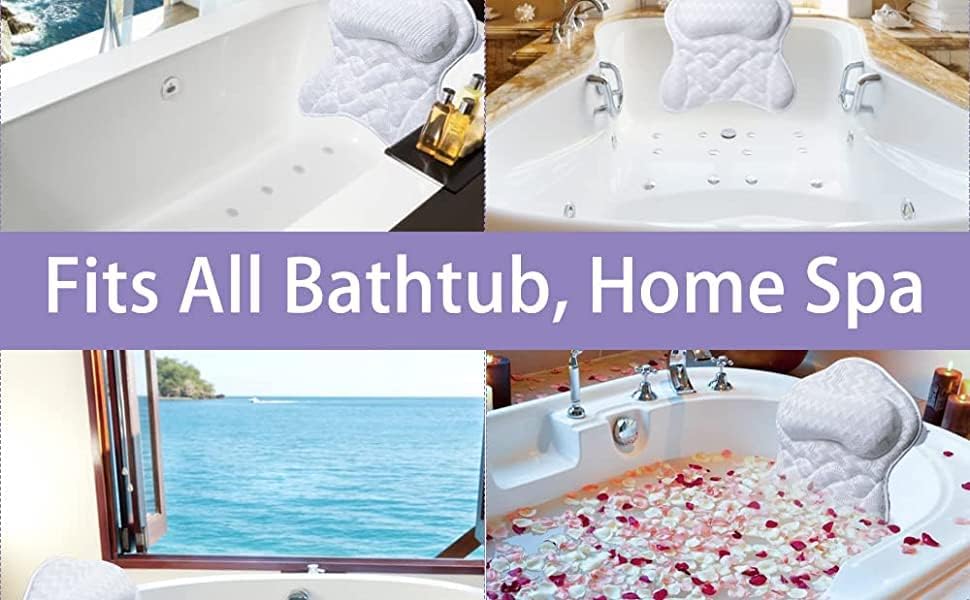 Bath Pillow, Tub Pillow for Bathtub Support Neck,Head and Back with Strong Non-Slip Suction Cups and Comfortabl 3D AirMesh Bath Pillow for Men and Women