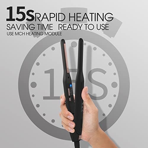 K&K Mini Flat Iron for Short Hair 3/10 inch Small Hair Straightener for Pixie & Beard creamic Flat Iron for Women Dual Voltage, Auto Shut Off