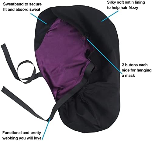 ABAMERICA Scrub Caps for Women Surgical Caps Nurse Hat Functional Ponytail Holder for Long Hair Single or Satin-Lined
