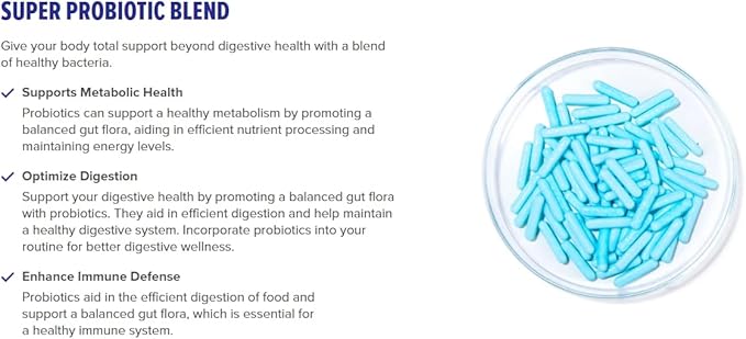 - PROBIOTICS FOR DIGESTIVE WELLNESS: Our advanced formula combines probiotics with GLP-1 support to help maintain a balanced gut flora, which is crucial for digestive wellness and overall health.