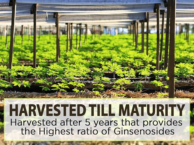 - HARVESTED TILL MATURITY: The age of Ginseng plays an ideal role in its effectiveness for the best possible results. Our Ginseng roots have been grown for 5 years before being harvested which gives us the ideal quality