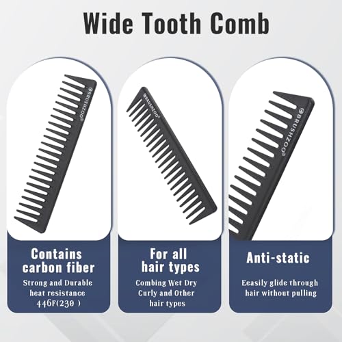 - Wide Tooth Comb: Contains carbon fiber glide through hair without pulling, Anti-static, Great for thick long Curly hair detangling parting
