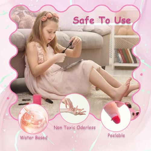 Kids Nail Polish Kit, 12 Color Toddler Nail Polish Set Non Toxic Peel-Off Safe Water Based Low Odor for Girls Ages 5+ for Makeovers and Birthday Gifts Nail Paint Set