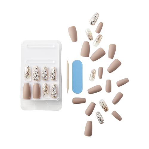 KISS Masterpiece Fake Nails One-of-a-Kind Luxe Manicure Set, 'Heirloom', 30 False Glue-On Nails including 12 Jewel Accent Nails