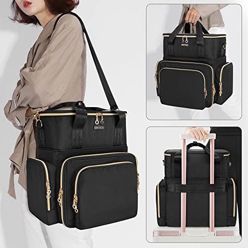 BAFASO Double Layer Nail Polish Organizer Holds 70 Bottles (15ml - 0.5 fl.oz) and a Nail Dryer, Nail Polish Case with 2 Removable Pouches and Tools Storage Sections (Patented), Black
