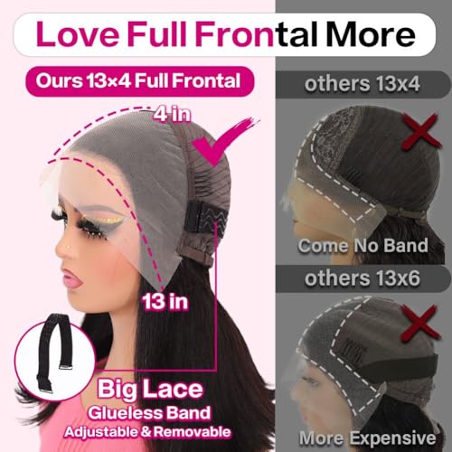 - 【Removable Glueless Band,Suitable For All Head Shapes】:Adjustable Cap(21.5 To 22.5 Inch) Fit In Small Medium And Large Head.3 Combs And Removable Glueless Band Can Help You Secure Gluelessly,Suit For Daily Use, Wedding, Graduation, Holiday, Party