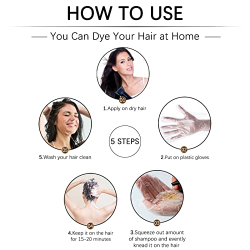 - 【Easy To Use 】Our blonde hair shampoo is simpler and quicker than traditional hair coloring methods, no bowl or brush, no need to mix in advance and hassle-free to dye hair at home, just wear the gloves in the package,and apply it as normal shampoo on DRY hair,rub it evenly for 5-10 minutes,and hold it on for 15-20 minutes,then rinse.You can have shiny blonde hair immediately.