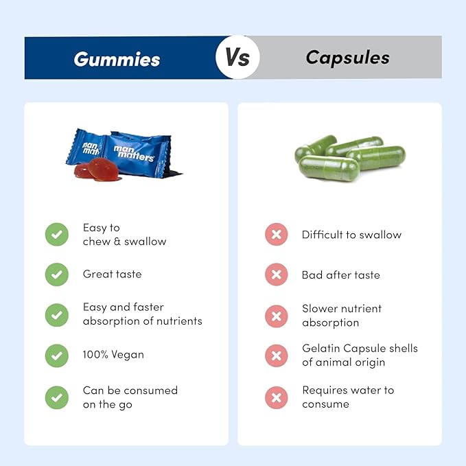 - GIVES THE RIGHT NUTRITION: Man Matters Biotin Gummies are formulated with pure easily absorbable Biotin that is rich in fatty acids & powerful antioxidants that give your hair the right nutrition. Gummies promote fast and proper absorption of the nutrients, resulting in improved visible health of the hair.