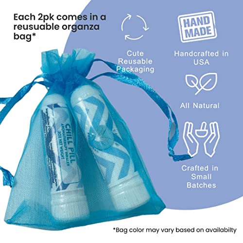 CHILL PILL 2PK Essential Oil Blend – Aromatherapy Tube with Lavender, Chamomile, Clary Sage – Soothing, Calming, Relaxing Fragrance – Stocking Stuffer