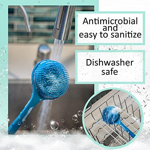 - Flexible - Fully bendable and extra long unique handle ensures optimal reach for back scrubbing or scalp scrubbing without sustaining the uncomfortable overhead reaching!