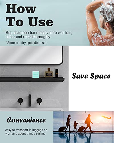 - convenient on the go: These solid shampoo bars are a convenient option for travel, camping, airplane or on the go, since they are compact and don't take up much space in your suitcase and no worry about leaking!