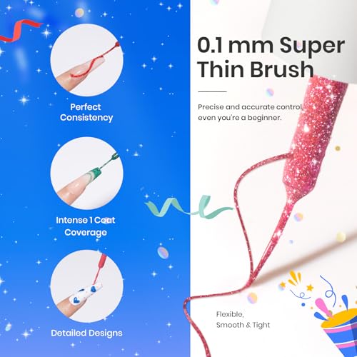 - 【Reflective Glitter Gel Shining in Dark】: The glitter gel nail polish of liner gel polish will show very bright and intensive little sparkle spots through the light refraction at night. Whether it's a dazzling party, a happy reunion, or a festive celebration, the gorgeous charm you like is all here.