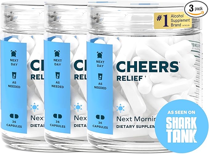 - #1 in alcohol-related health: Cheers Relief is a natural next-morning aid designed to help you drink smarter and feel closer to 100% the next day. Our Relief capsules work the next morning if you still need extra help after responsible drinking.