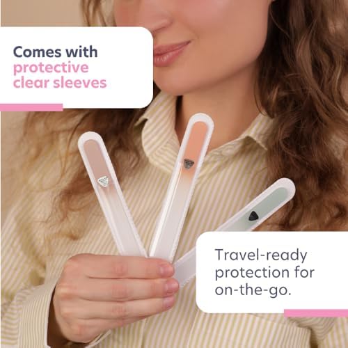 - Genuine Czech Glass Nail Files Set - 3 Piece set of glass nail files for natural nails. Also known as crystal nail files, these can be used regularly to achieve strong and healthy nails. These tools are suitable for all nail types (thin, sensitive, thick, and more).