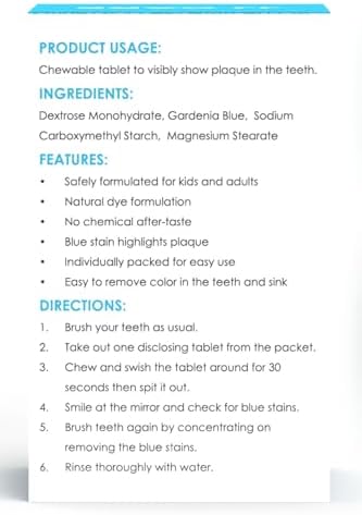 - Fun Blue Color & Grape Flavor โ Kids will surely love these tooth tablets in a fun blue shade. The dental plaque tablets also have an enjoyable grape flavor for a more pleasant gargling or chewing experience.