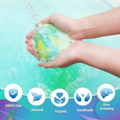 - dissolves and rinses with Natural and Organic Bath Bombs: Made from organic shea butter and essential oils, all bath bomb ingredients meet or exceed all safety standards and are safe to put in your child's bath and are safe and gentle for your kids. Easily dissolves and rinses without leaving marks on the tub.out leaving marks on the tub, perfect for kids gifts.