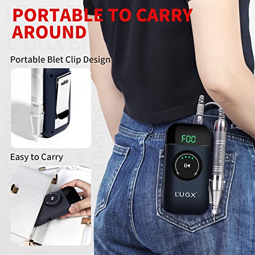 L'UGX Nail Drill 35000RPM Professional Brushless Electric Machine, Rechargeable Cordless Nail Efile for Acrylic Gel Nails, 8Pcs Nail Drill Bits, Low Noise Low Vibration