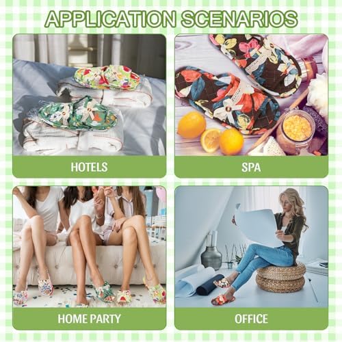 Chuarry 5 Pairs Floral Cotton House Slippers for Women, Soft Open Toe Indoor Spa Slippers for Guests Non Slip Washable Comfortable Portable Shoes for Hotel Travel Bedroom Airplane Party