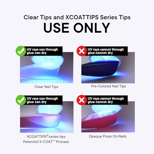 - This Nail Glue Only supports clear nails and xcoattips French Series, Cat eye Series, 2 IN 1 XCOATTIPS Series and Omber Series. The following products cannot be used. 1. press on nails. 2. Any other nail with color from other brands. 3. Xcoattips other solid/plated colors.