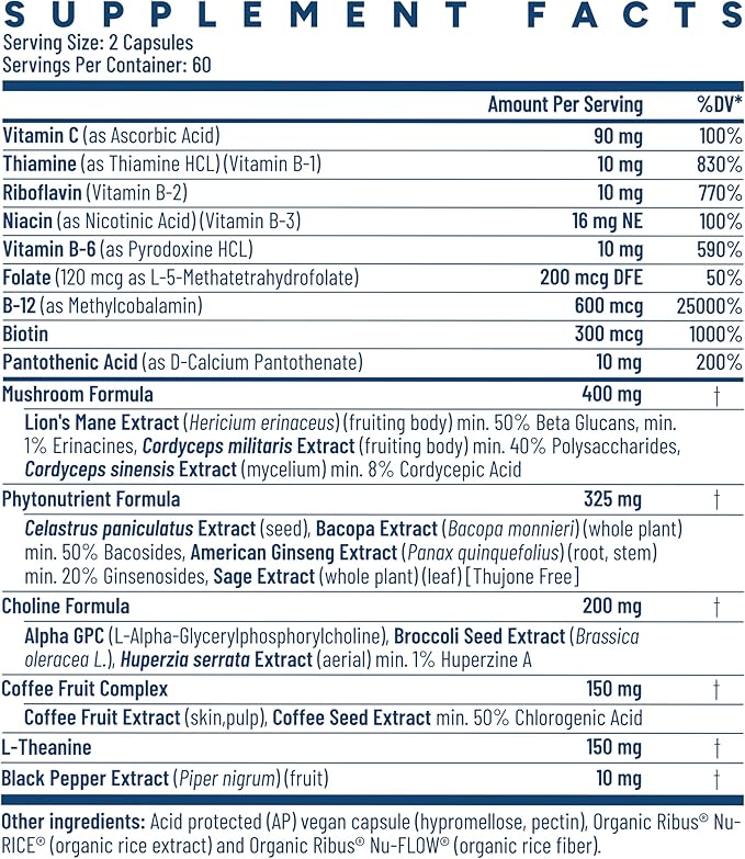 - ๐๐๐ฒ๐น ๐ฌ๐ผ๐๐ฟ ๐๐ป๐ฒ๐ฟ๐ด๐, ๐๐น๐ผ๐, & ๐๐ฟ๐ฎ๐ถ๐ป ๐๐ฟ๐ถ๐๐ฒ : Fire up your engine with our highly bioactive methyl B complex. Alpha GPC Choline, B12, B6, & B9 play crucial roles in ATP energy production, mitochondrial, & neurological health. Outlast the competition with reduced caffeine Whole Coffee Berry for restorative support without the toxic crash. Get your flow state on with Dual Extracted Cordyceps Mushrooms and support maximum oxygen NO2 uptake, VO2 max factors, heart, lung, & cerebral blood flow.*