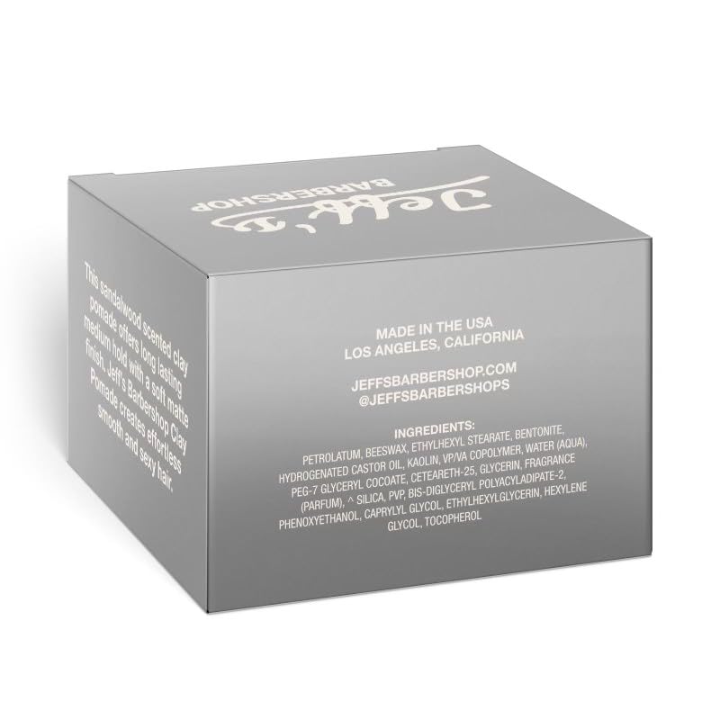 Jeff's Barbershop Clay Pomade, Sandalwood - Medium Hold, Matte Finish Hair Styling Cream Wax with Natural Beeswax & Castor Oil (3.4 fl oz/100ml)