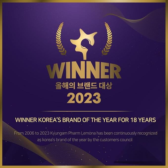 - 🇰🇷 Korea’s Trusted Brand for 40 Years: Since 1983, Kyungnam Pharm’s LEMONA has been Korea’s Brand of the Year for 18 consecutive years—a testament to our quality and customer loyalty