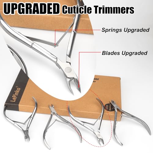 LePinko 4 Packs Upgraded Cuticle Trimmer kit, Sharp Dead Skin Clipper, Labor-saving Cuticula Remover for Fingernail Toenail, Manicure Pedicure Tool for Women Men, 5mm Jaw