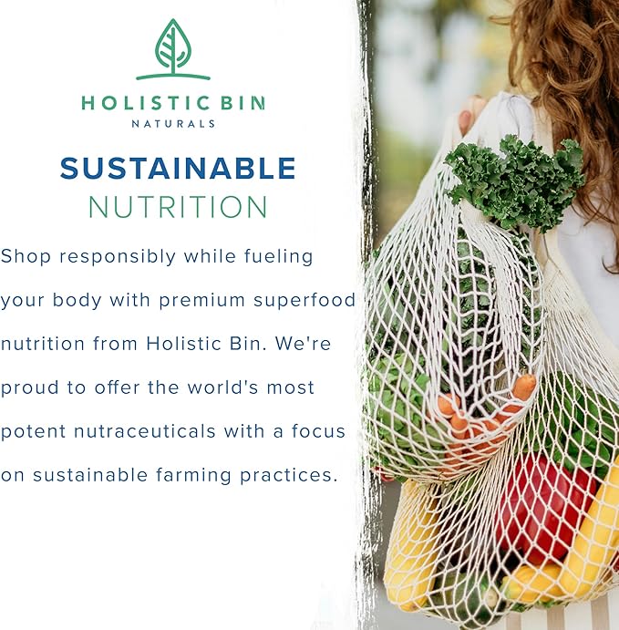 - SUSTAINABLE NUTRITION: Shop responsibly while fueling your body with premium superfood nutrition from Holistic Bin. We're proud to offer the world's most potent nutraceuticals with a focus on sustainable farming practices.