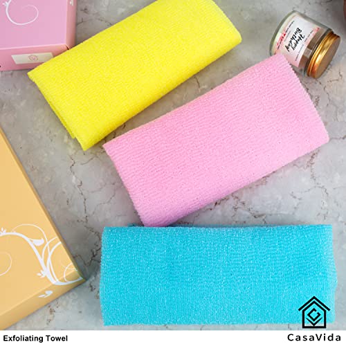 CasaVida Exfoliating Washcloth Back Scrubber for Shower Exfoliating Body Scrubber Japanese Beauty African Net Sponge Bath Korean Loofah Towel Wash Cloth Body Scrub 3 Pack (Navy-Blue x 3)