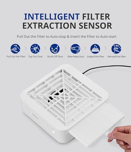 AIRSEE GD3 Powerful Nail Dust Collector, Professional Manicure Pedicure Vacuum for Acrylic Gel Nail Polishing with Reusable Filter, Home & Salon, White