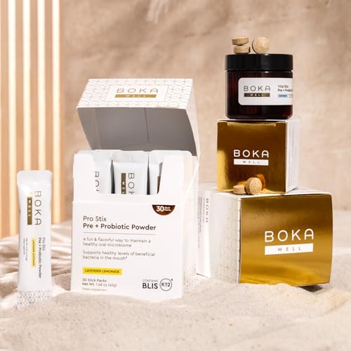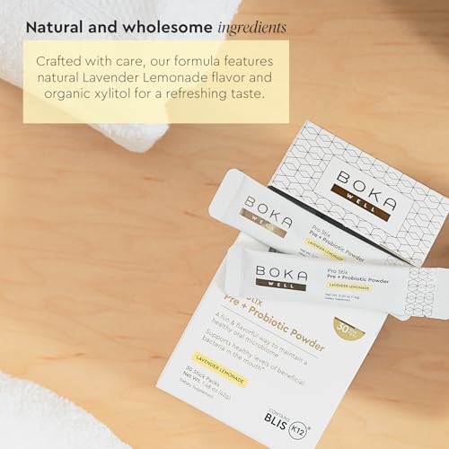 Boka Pro Stix Oral Probiotics for Mouth Bad Breath - 30ct Dental Probiotics Powder, Oral Health Pre + Probiotics for Teeth and Gums, BLIS K12 Oral Probiotic for Healthy Gum Health, Lemonade Lavender