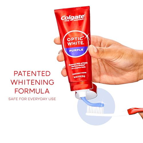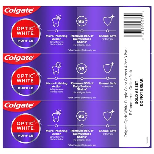 - Includes three (3) 4.2 oz tubes of Colgate Optic White Purple Toothpaste for Teeth Whitening, Fluoride Toothpaste