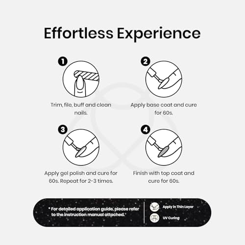 - Easy Application and Good Tenacity: With proper application, it lasts at least 28+ days. This item is UV gel. It is still sticky after curing. Cure under UV or LED lamp for 90-120 secs. It must be used with a base coat and top coat! This item does not include base and top coat, which needs to be purchased separately.