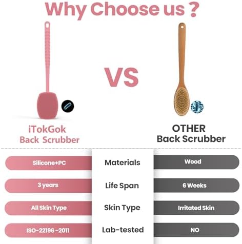 - Distinctive : Compared to other mediocre back scrubbers, ours features an extended tire design, an anti-slip handle, silver infused into food-grade silicone for a longer lifespan, and exquisite packaging, It is truly worth it.