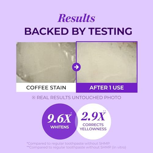 - [2.9X TONE-UP EFFECT IN JUST 1 USE] Experience instant brightness with our Purple Color Corrector Whitening Toothpaste, which instantly neutralizes stains and eliminates yellow tones in just 1 time use.